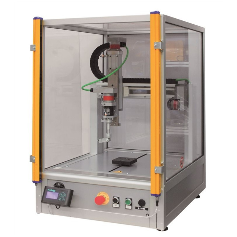 As for the dispensing applications, the 3D interpolation, the continuous path function, the automatic calibration system and the high mechanical precision guarantee utmost execution quality.WRa500 is supplied complete with safety guards and EC type-approvals.