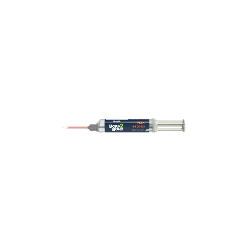 Born2Bond Flex is a flexible, elastic and low-odor, instant adhesive with exceptional adhesion to a very broad range of materials and surfaces. It has a curing time of only six minutes and becomes a polymer with more than 200% of elongation within 10 minutes. Its working times (in-mixer) can be up to six minutes. It can be used for high-volumetric gap filling, and achieves instant adhesion to most plastics, wood and metals and to porous and irregular surfaces.