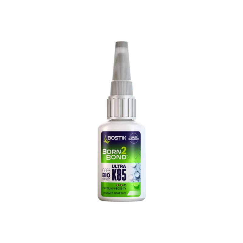 Born2BondTM Ultra K85 MV adhesive is low-odor, low-blooming, instant adhesive, specially designed to meet the demands of cutting-edge product designers and manufacturers looking for more durability and increased ease of dispensing. The formulation consistency has been designed for high bond strength, even in places that are subject to flexing. Bostik Born2BondTM Ultra K85 is made from up to 60% bio-based content and has an exceptional resistance to humidity and high temperatures.