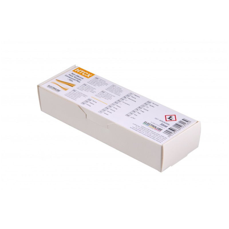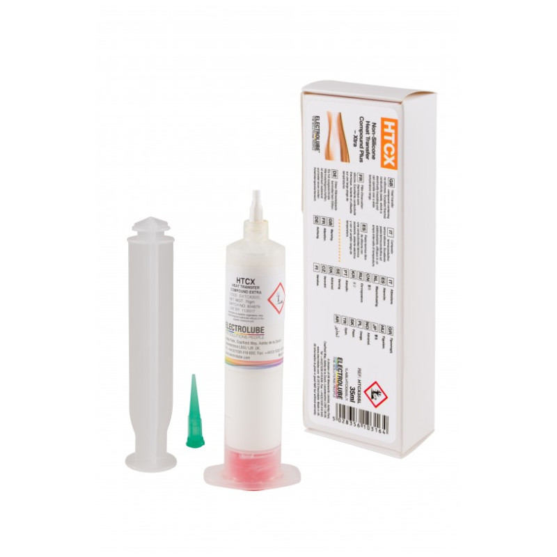 Electrolube HTCX je vylepšená verze HTC představující lepší tepelnou vodivost, nižší separaci olejové složky nižší odpařování a ztrátu hmotnosti .HTCX je doporučeno tam, kde je vyžadováno efektivní a spolehlivé tepelné spojení elektrických a elektronických součástek nebo mezi povrchy, kde je důležitá tepelná vodivost a odvod tepla. Měla by se používat na základny a montážní čepy diod, tranzistorů, tyristorů, chladiči, silikonových usměrňovačů a polovodičů, termostaty, elektrické odpory a radiátory.