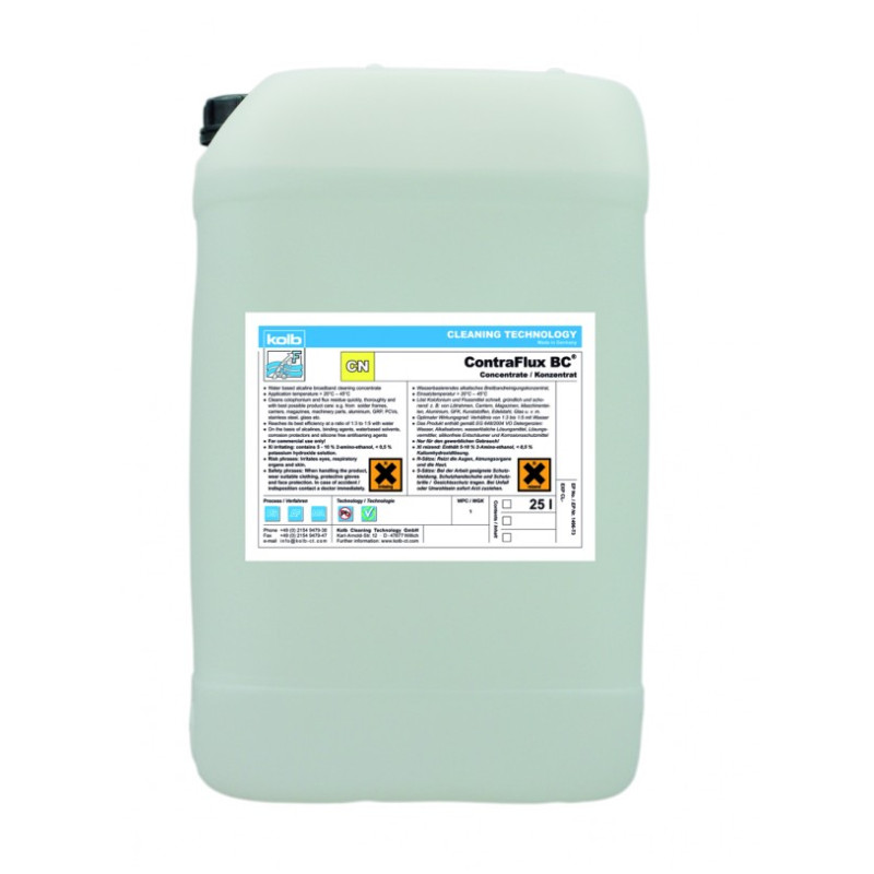 ContraFlux BC je alkalický širokopásmový čistič na vodní bázi , speciálně navržen pro údržbu a čištění nástrojů , přípravků a kontejnerů použitých při výrobě elektroniky.