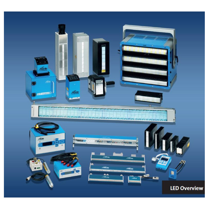 LED-UV systems are used in various fields of applications and have already established themselves alongside conventional UV lamps. The Dr. Hönle AG offers a huge choice of LED-UV curing units including point sources, spot lamps, floods and lines in different lengths and irradiation widths. Our strength lies in finding and developing customized curing solutions.