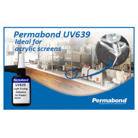 PERMABOND® UV639 is a UV-curing adhesive developed for use on plastics. It has superb adhesion to acrylic, polycarbonate and PETG. This adhesive can also be used to bond glass, metals and other materials. UV639 cures to give a colourless bond so is ideal for applications where aesthetic appearance is vitally important. Features & Benefits Cure on demand Highly transparent Excellent adhesion to plastics High elongation PropertiesDescription; ...