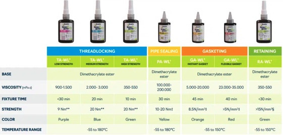 The result is a core range of Anaerobic adhesives and Cyanoacrylates which are entirely free of hazard labels. This is also supported by a range of high precision functional aerosols for daily operations in the workshop.