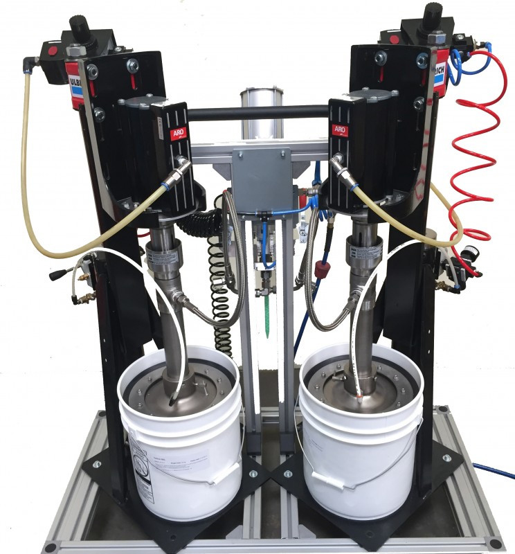 The two pumps are assembled together with a pneumatic ram system for lifting