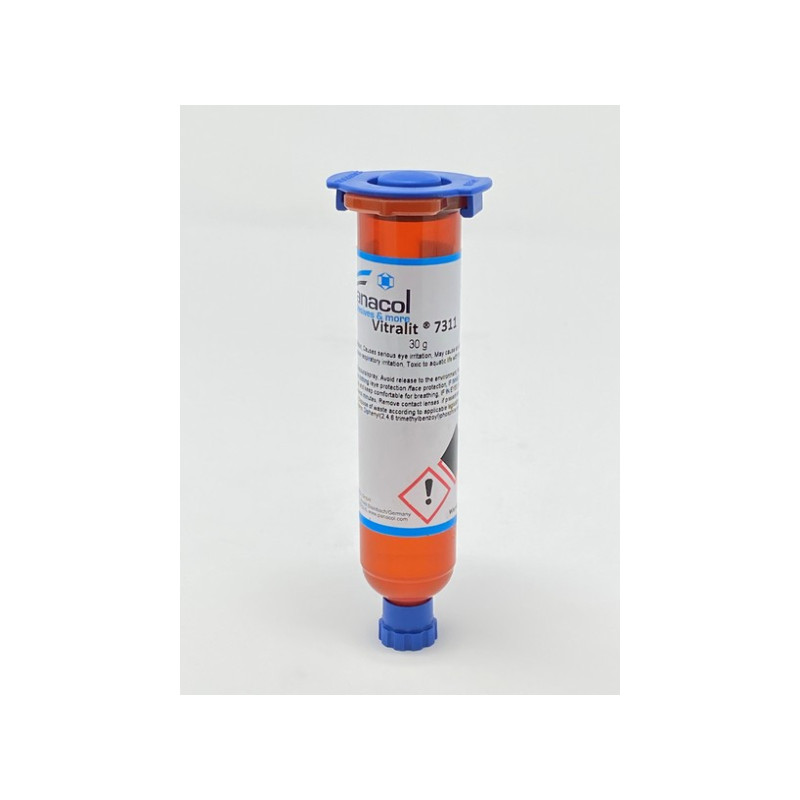 Vitralit 7311 is a low viscosity, solvent-free UV curable acrylate adhesive. It bonds to a broad array of materials including polycarbonate, stainless steel, PVC, nylon, glass, and ABS. When properly cured it provides clear bonds of high strength.