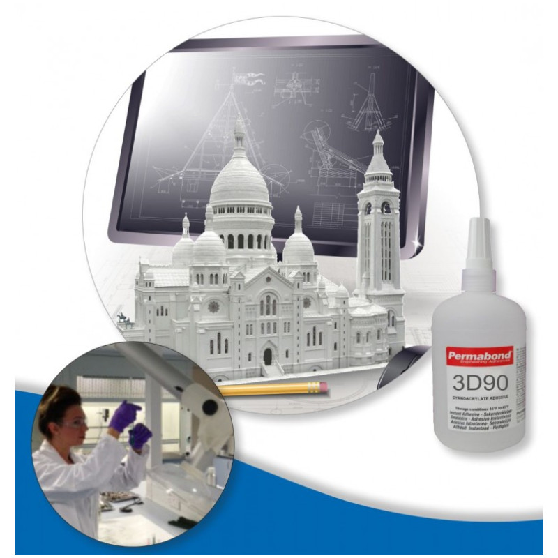Permabond 3D90 has been developed for use as an infiltrant for toughening 3D printed parts. It is a low odour, non-fogging, non-frosting alkoxyethyl cyanoacrylate. Its ultra-low viscosity is ideal for wicking into porous surfaces and its delayed cure allows deeper penetration into larger parts. The low odour formulation allows use in large dip baths or for coating large surfaces. Using Permabond 3D90 on printed parts helps strengthen and protect them, as well as fill any voids or porosities and give a smooth, shiny finished appearance.