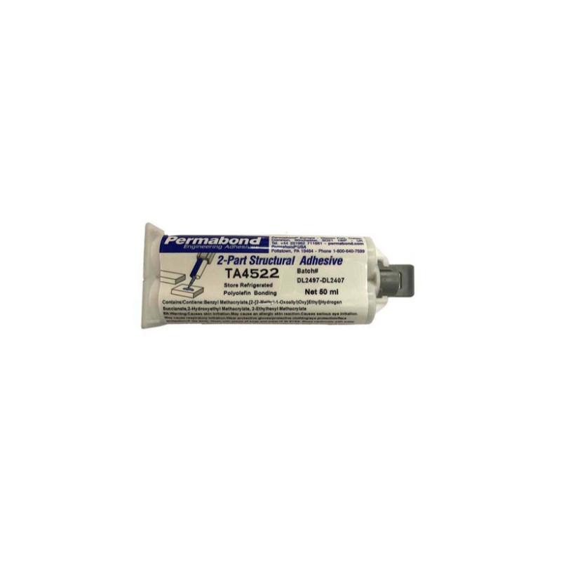 PERMABOND TA4522 is a low-odour 2-part, 1:1 toughened acrylic adhesive. It can be used to bond a wide variety of materials including plastics, GRP, ceramics, wood, metal and other substrates. It is convenient to use in an easy-to-dispense cartridge with mixing nozzle or can be applied bead-on-bead* without static mixer.This product’s non-aggressive formulation helps minimize the chance of stress cracking in sensitive plastics.