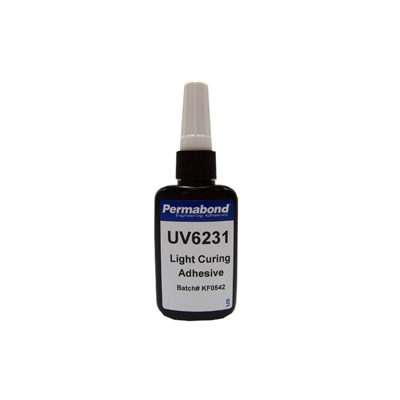 Permabond UV6231 je jednosložkové, rychle vytvrzující, UV vytvrzující lepidlo. Vynikající optická čirost a odolnost vůči žloutnutí je ideální pro lepení skla a křišťálu pro vysoce kvalitní povrchovou úpravou. Má vynikající odolnost proti vlhkosti a vodě a je ideální pro aplikace "koupelnového typu" (např. osobní váhy, sprchové dveře atd.) a také na venkovní aplikace, kde je nezbytná dobrá odolnost proti povětrnostním vlivům.