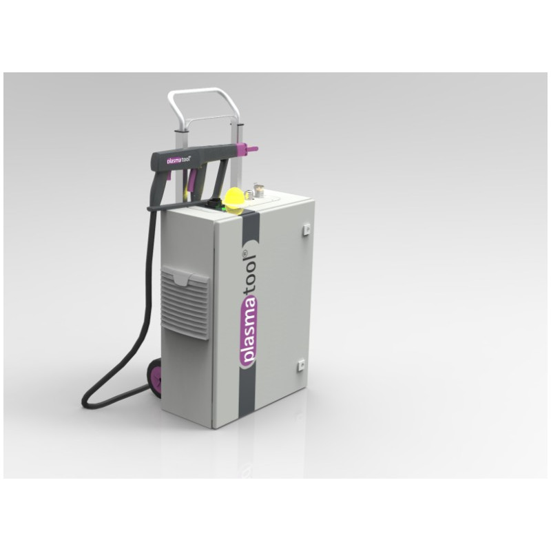 DesignThe Plasmatool® can be used everywhere thanks to the trolley design. Two-handed operation and a signal lamp protect and warn the operators and third parties. The handling of the Plasmatool® is optimized for easy usage and maximum operator´s safety.