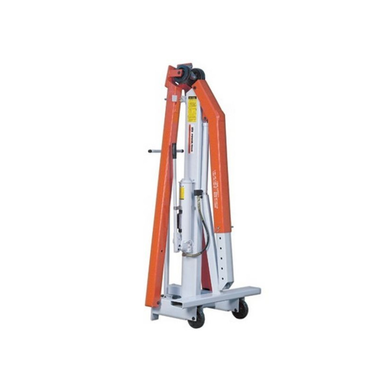 Mobile Floor Crane has adjustable legs to clear obstacles, telescoping boom for extra reach, boom collapses and legs fold for compact storage.