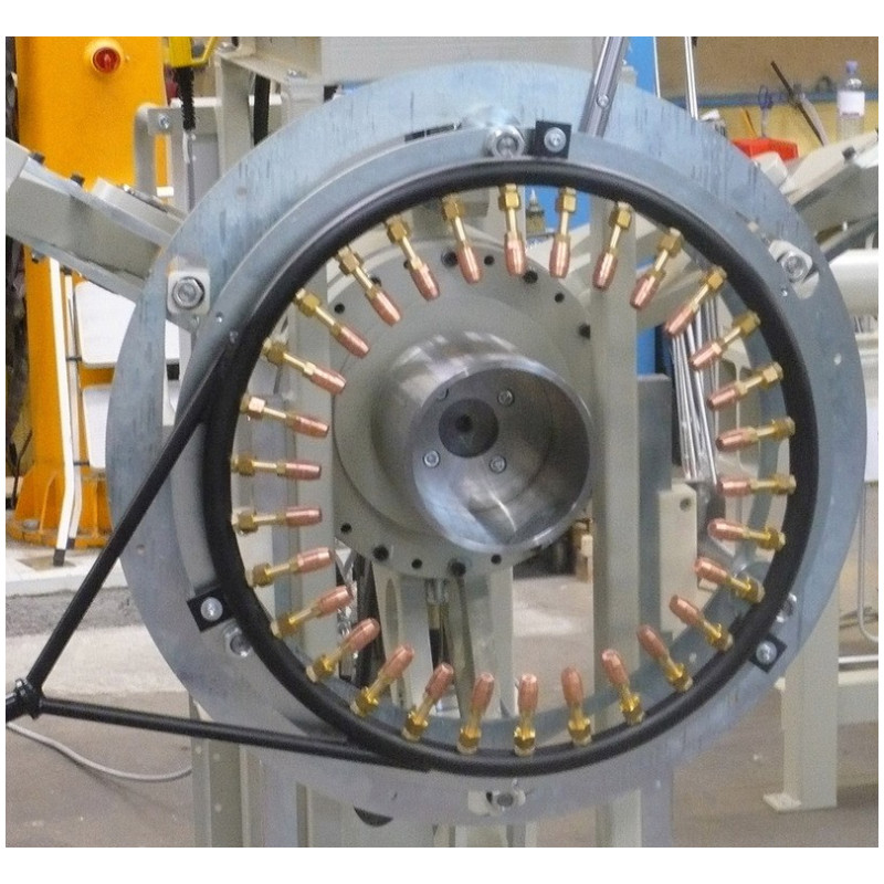 The solution with integrated acetylene-compressed air ring-burner is specially developped for wheel-disk without oil-pressure-drilling. While the solution with the high pressure-hydraulic power pack is put into action on wheel-disks with oil-pressure-drilling.